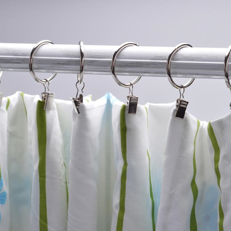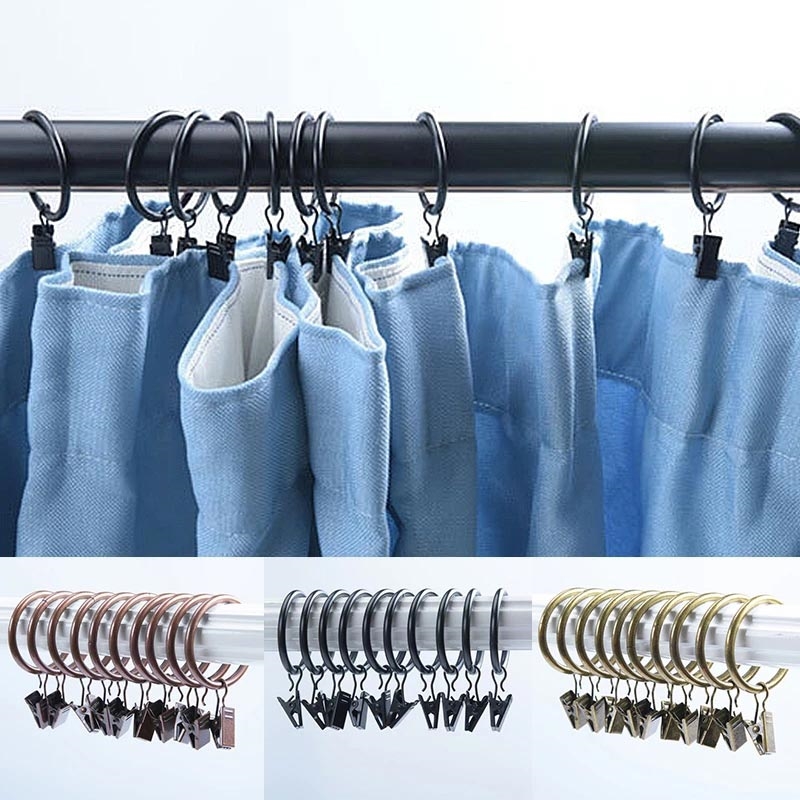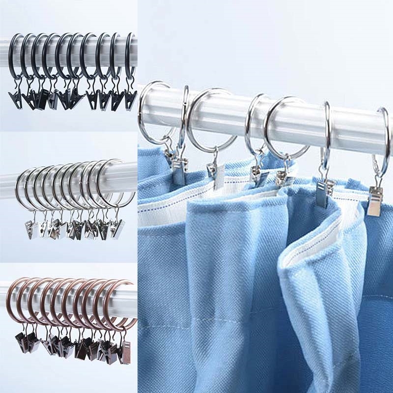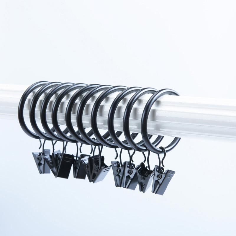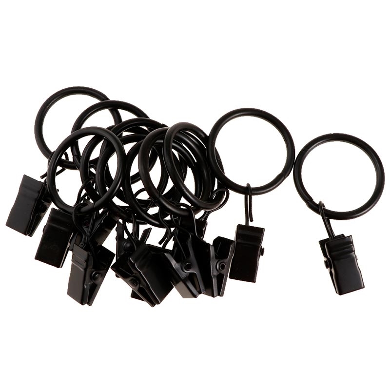 10 pièces d'anneaux de rideau de douche robustes avec pinces - Crochets en fer résistants à la rouille, 25 mm