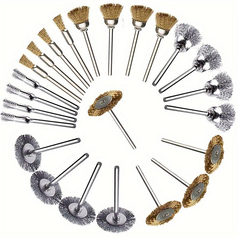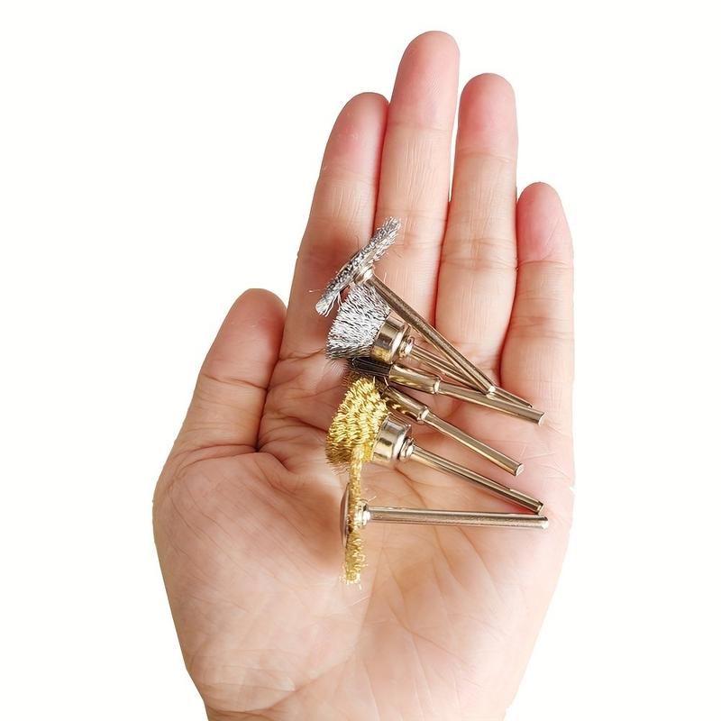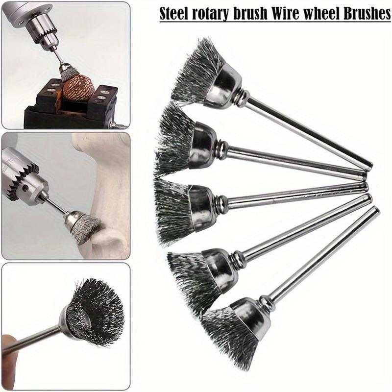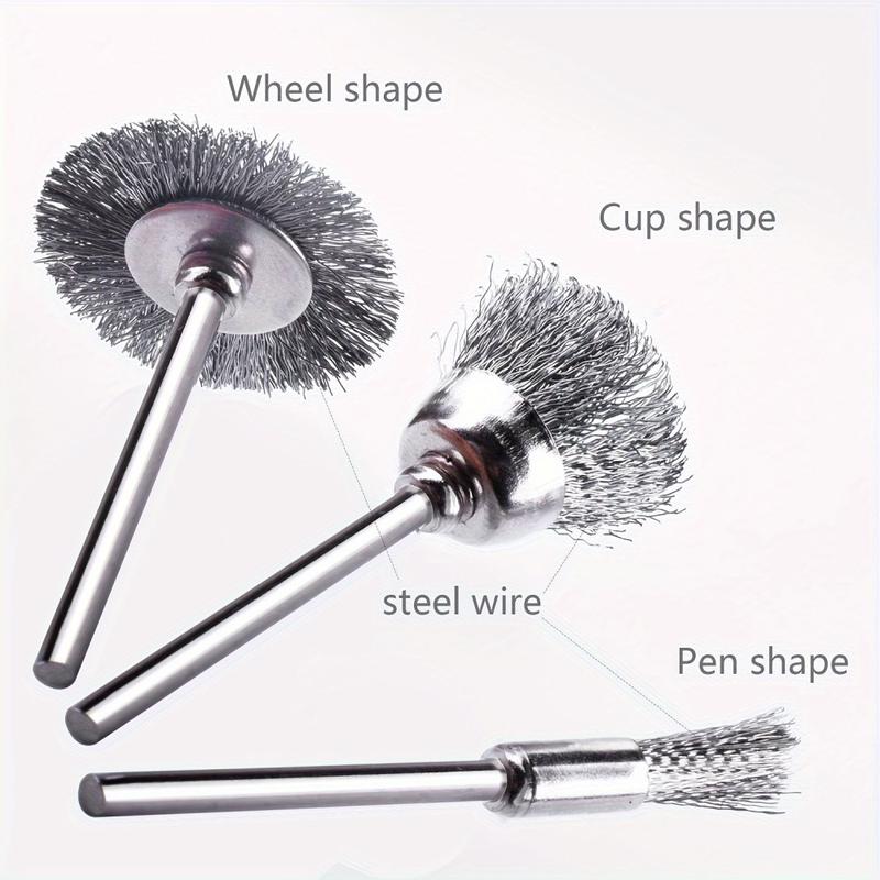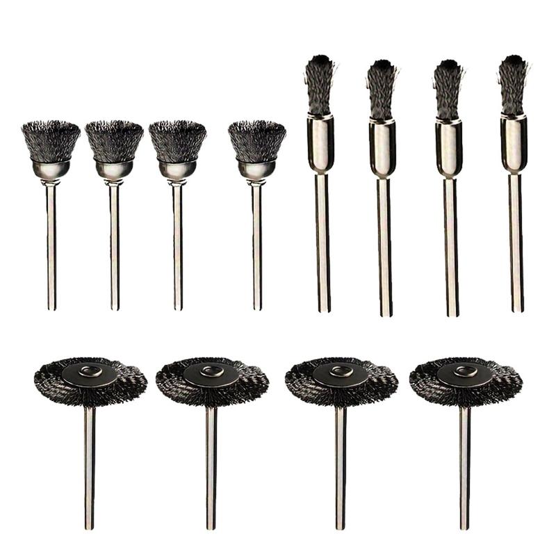 12 Pcs. Ensemble de brosses métalliques de 3mm - forme stylo, bol et T pour l'élimination de la rouille et le polissage des outils rotatifs
