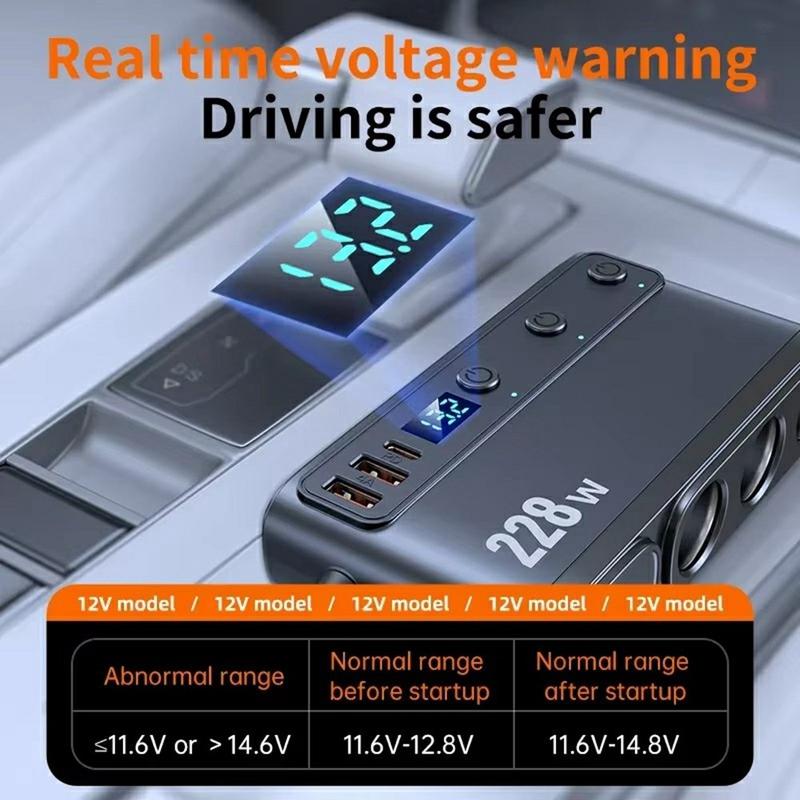 L'affichage LED intégré indique la tension de la batterie de votre véhicule en temps réel, ce qui vous aide à contrôler la sécurité électrique lorsque vous êtes sur la route. Il confirme également que vos appareils se chargent à une vitesse optimale.