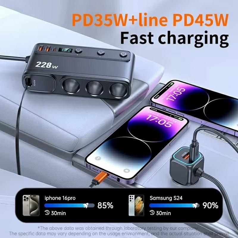Avec une puissance totale impressionnante de 228 W, ce chargeur de voiture 9 en 1 vous permet d'alimenter et de charger jusqu'à neuf appareils simultanément. Que vous fassiez un long voyage, que vous vous rendiez au travail ou que vous utilisiez plusieurs gadgets à des fins professionnelles, vous disposerez toujours d'une alimentation fiable à portée de main.