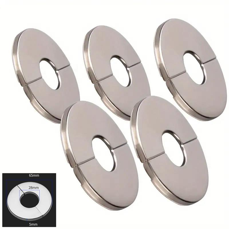 5 Pcs. Plaque décorative auto-adhésive pour robinetterie et tuyauterie - Couvercle de bride à trou mural rond en acier inoxydable