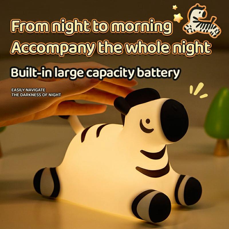 A067 Veilleuse zébrée en silicone - Commande par robinet, rechargeable et douce lumière ambiante