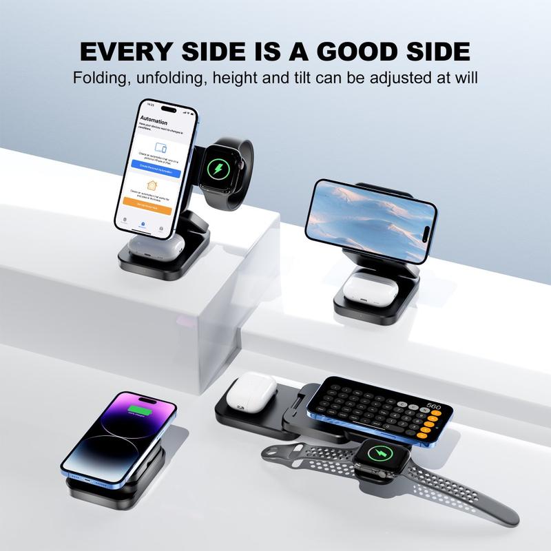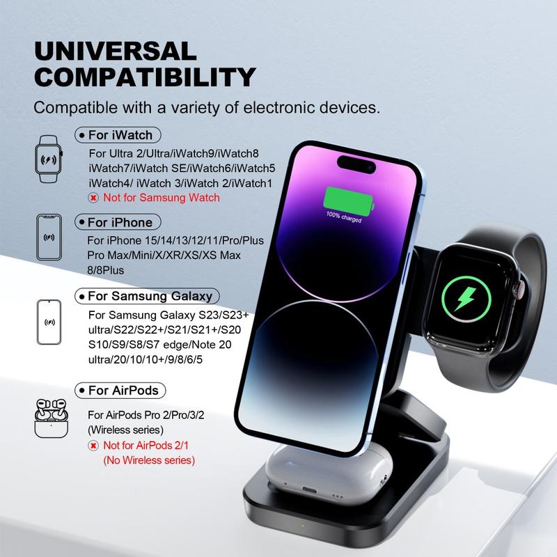 - Chargement sans fil 3-en-1 - Prend en charge le chargement simultané des smartphones, de l'Apple Watch et des AirPods, pour que tous vos appareils soient prêts à l'emploi.