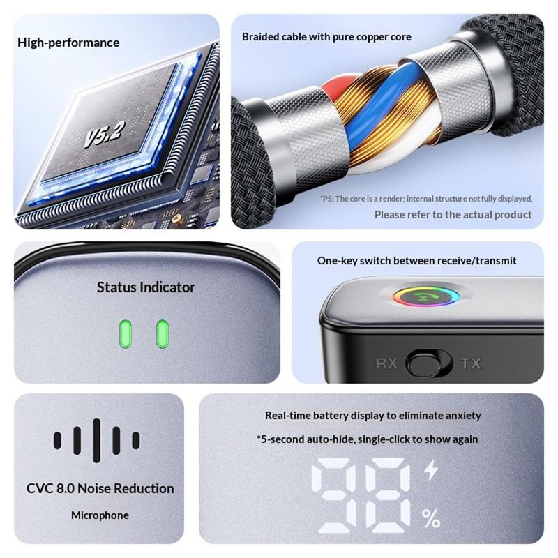 Équipé d'une puce Bluetooth 5.2 avancée, l'adaptateur offre un appairage rapide, une faible latence et des connexions stables. Il prend en charge plusieurs formats de décodage audio pour un son clair et équilibré pendant la lecture de musique et les appels.