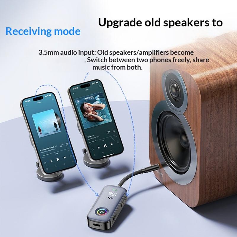 L'A6 Pro fonctionne à la fois comme récepteur et émetteur Bluetooth, vous permettant de connecter deux smartphones ou deux paires d'écouteurs Bluetooth en même temps. Idéal pour partager de la musique ou mettre à niveau des systèmes audio de voiture non compatibles Bluetooth.