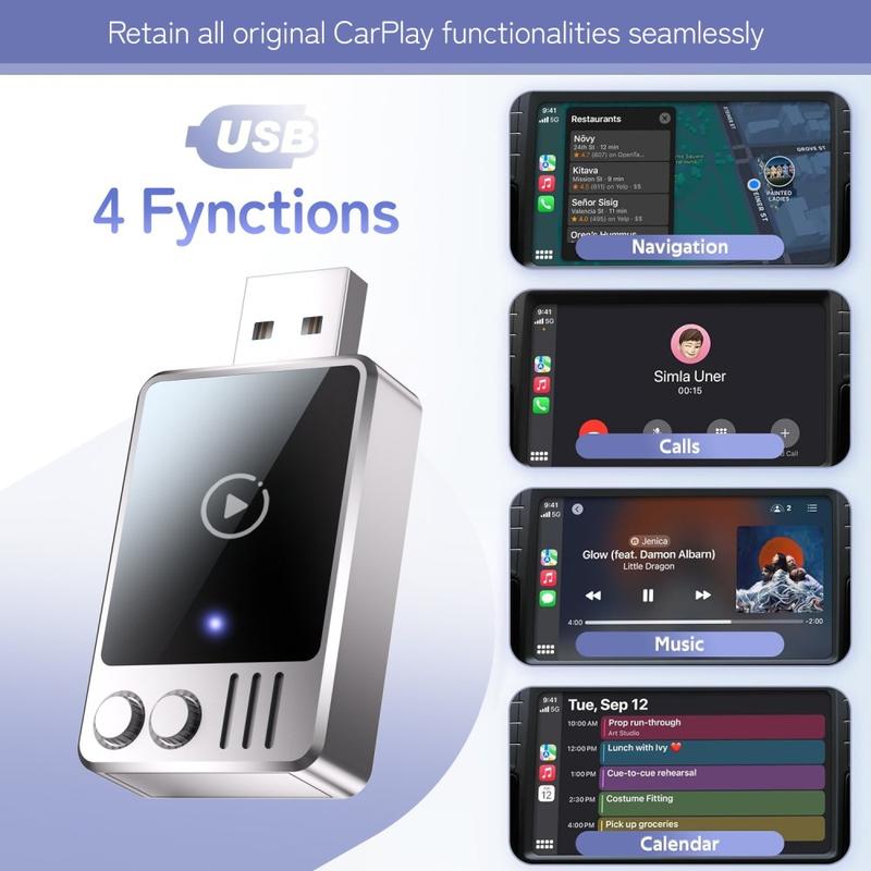 L'adaptateur prend entièrement en charge toutes les fonctionnalités d'origine de CarPlay, notamment la navigation, les appels téléphoniques, le streaming musical, la messagerie et l'accès au calendrier. Votre expérience de conduite reste familière, mais sans le câble.