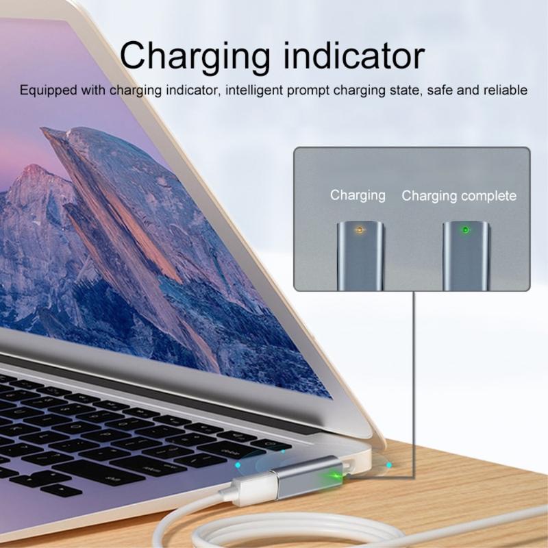 L'interface magnétique assure une connexion sécurisée qui résiste aux déconnexions accidentelles, protégeant ainsi votre ordinateur portable pendant la charge. Un indicateur de charge intégré indique clairement l'état de la charge, ce qui vous permet d'avoir l'esprit tranquille et de contrôler facilement l'état de la charge en un coup d'œil.