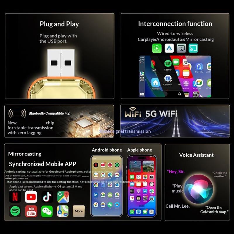 - Convertit CarPlay et Android Auto filaires en sans fil