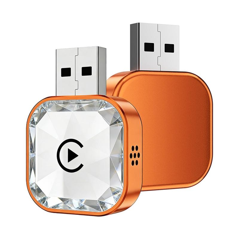 Adaptateur sans fil 4-en-1 Q1AS Diamond Cut pour Android Auto et CarPlay - Argent / Orange