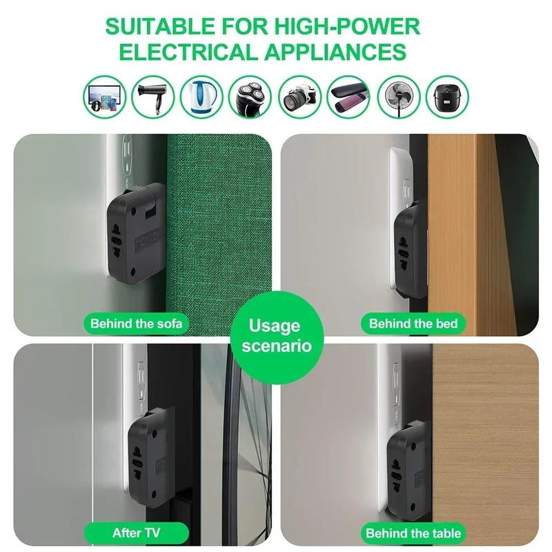 - Les prises plates rotatives sont particulièrement utiles derrière les armoires ou les canapés, où les prises standard bloquent souvent le placement des meubles.