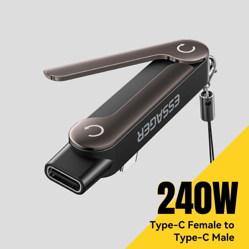• Adaptateur Essager en L, femelle USB-C vers mâle USB-C avec support pliable, recharge rapide 240 W, 40 Gbps