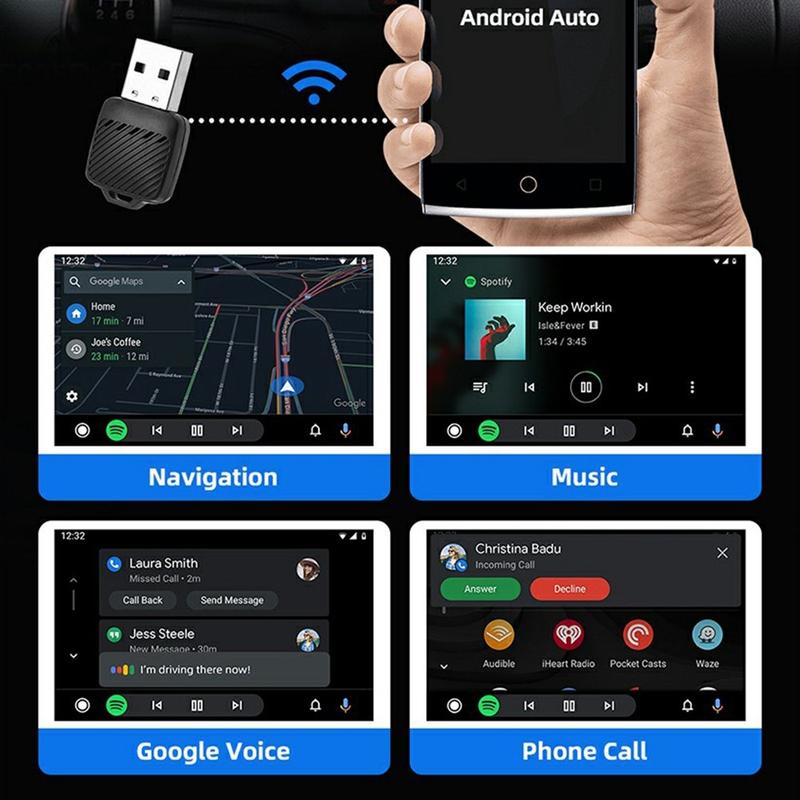 Transformez la prise CarPlay / Android Auto installée en usine dans n'importe quel véhicule compatible en une expérience sans câble. Cet adaptateur ultra-compact (seulement 3,42 x 2,02 x 0,53 cm, 20 g) se branche sur le port USB existant et se connecte à votre téléphone via le Wi-Fi 2,4 / 5 GHz et le Bluetooth 5.0. En quelques secondes, vos applications, vos cartes et votre assistant vocal s'affichent sur l'écran d'infodivertissement - pas de fils qui pendent, pas de combiné accroché à la poche.