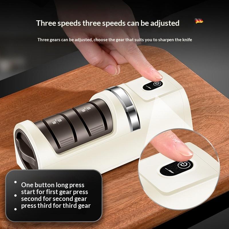 • Aiguiseur électrique sans fil de 12W avec 3 vitesses et meule diamantée pour couteaux de chef