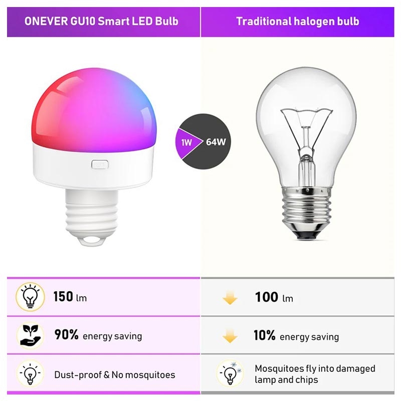 - Télécommande : Réglage de la luminosité, de la chaleur, des 15 couleurs et de la minuterie
