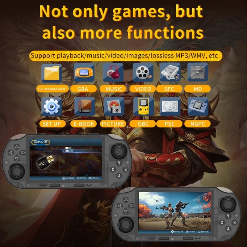 Revivez l'âge d'or du jeu avec la console de jeu portable Ampown SF3000HD, une console portable puissante conçue pour les joueurs nostalgiques et modernes. Dotée d'un système d'exploitation Linux 64 bits, d'un stockage interne de 64 Go et de la prise en charge de plus de 20 émulateurs de jeux classiques, elle offre une expérience de jeu fluide et immersive. L'écran IPS plein écran de 4,5 pouces avec verre trempé ultra résistant offre des images nettes, tandis que la connectivité HD TV vous permet de profiter de vos titres préférés sur grand écran. Le WiFi intégré permet de jouer en ligne en mode multijoueur, et la manette filaire incluse vous permet de vous mesurer à vos amis pour une expérience authentique de la console. Compact, ergonomique et polyvalent, le SF3000HD est le compagnon de divertissement idéal pour les joueurs de tous âges.