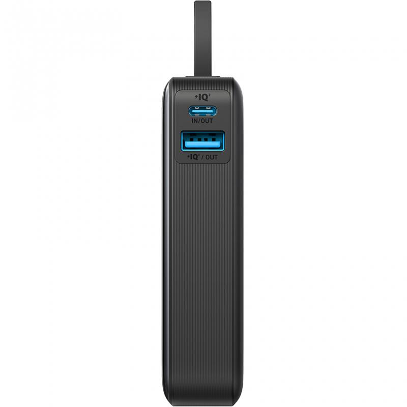 - Câble USB-C intégré - toujours attaché, toujours prêt ; sert également de fil d'entrée pour recharger la banque.