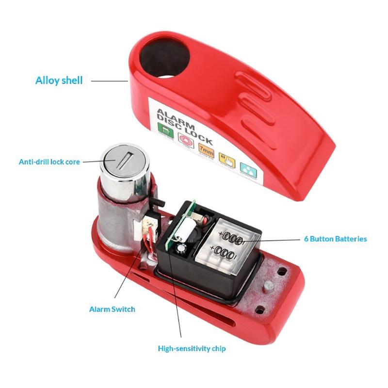 Antivol à disque pour vélo en alliage d'aluminium haute résistance Bengguo avec alarme de 110 dB - Antivol avec 2 clés