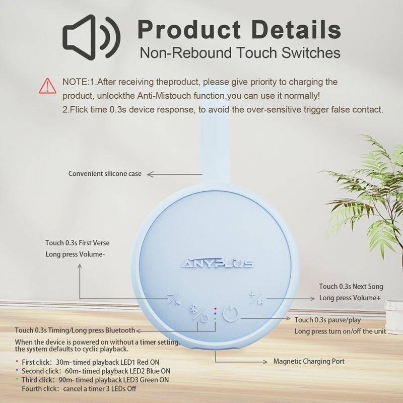 • AnyPlus Machine à bruit blanc portable pour le sommeil de bébé / Machine à bruit pour l'aide au sommeil avec haut-parleur Bluetooth