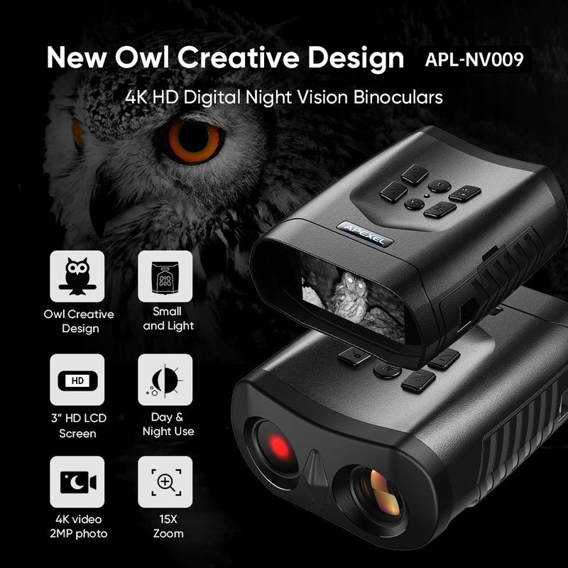 Faites l'expérience d'une clarté inégalée dans des conditions de faible luminosité avec les jumelles numériques à vision nocturne APEXEL APL-NV009. Combinant un zoom optique 5X, un zoom numérique 3X et un écran IPS haute résolution de 3 pouces, cet appareil portable est parfait pour capturer de superbes vidéos 4K et des photos détaillées de 2 à 12MP, de jour comme de nuit. Son design ergonomique inspiré du hibou et son éclairage infrarouge intégré en font un outil indispensable pour l'exploration en plein air, l'observation de la faune et de la flore et la surveillance de la sécurité.