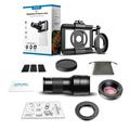 - Conception 2 en 1 : téléobjectif 6x + objectif macro 150 mm