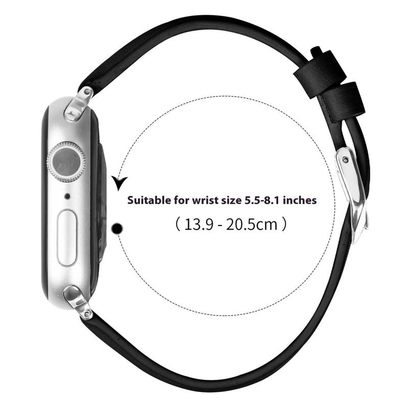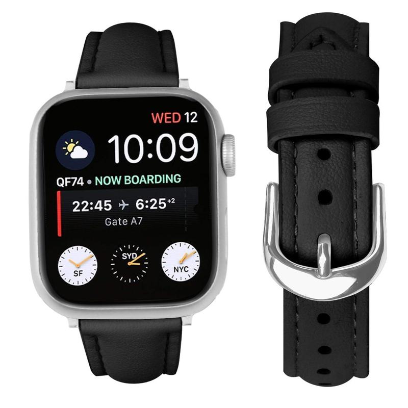 Bracelet fin en cuir pour Apple Watch Series 11, Apple Watch Series 10, Apple Watch Series 9, Apple Watch Series 8, Apple Watch SE 3, Apple Watch SE (2022), Apple Watch Series 7, Apple Watch SE, Apple Watch Series 6, Apple Watch Series 5, Apple Watch Series 4, Apple Watch Series 3, Apple Watch Series 2, Apple Watch Series 1 - Bracelet en cuir souple avec boucle argentée