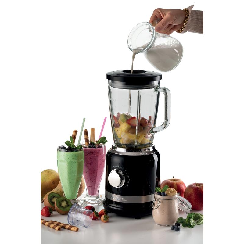 Le blender Ariete Moderna avec un gobelet en verre de 1,5 litre est l'appareil de cuisine idéal pour créer une grande variété de boissons et de recettes. Grâce à son puissant moteur de 1000 W et à ses 4 lames en acier inoxydable, il permet de mixer sans effort des smoothies, de piler de la glace et de réduire des légumes en purée. Le blender dispose de 4 vitesses et d'une fonction Pulse, ce qui vous permet de personnaliser la texture de vos ingrédients. Le gobelet en verre est à la fois durable et pratique, avec une échelle de mesure et un bouchon amovible permettant d'ajouter des ingrédients en cours de mixage.