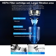 - Forte puissance d'aspiration - Aspiration de 6000Pa avec un moteur de 42000rpm pour un nettoyage efficace.