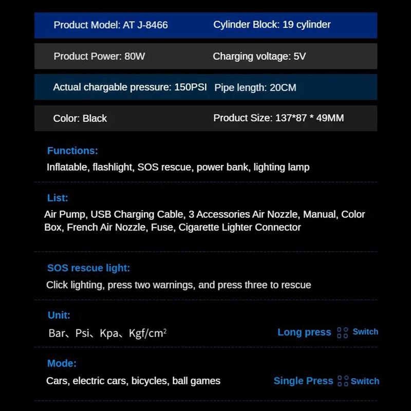 ATJ-8466 Gonfleur de pneus portable avec fonction Power Bank