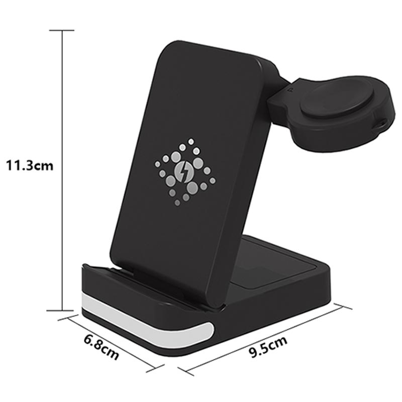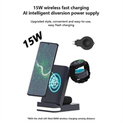 B-27 Chargeur sans fil pliable 3-en-1 avec veilleuse - 15W - Chargement rapide pour smartphones, écouteurs et Samsung Galaxy Watch
