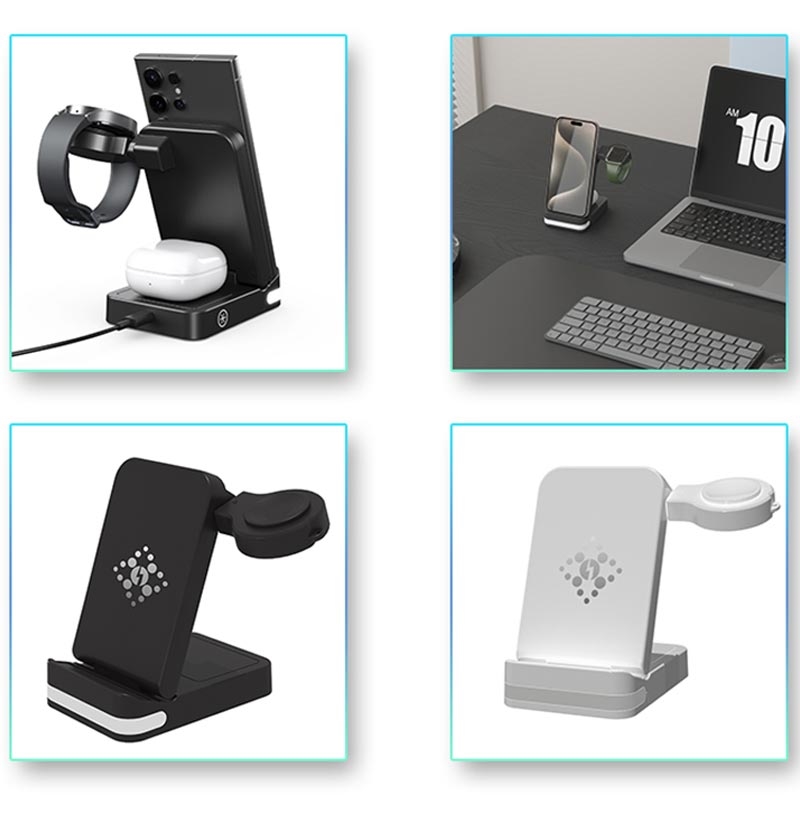 Avec le chargeur sans fil pliable 3-en-1 B-27, vos appareils sont toujours alimentés et organisés, et votre espace est toujours éclairé.