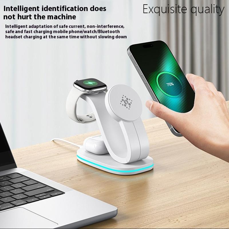 B-28 Chargeur sans fil 3-en-1 avec veilleuse - alimente téléphone, montre et écouteurs en un seul endroit