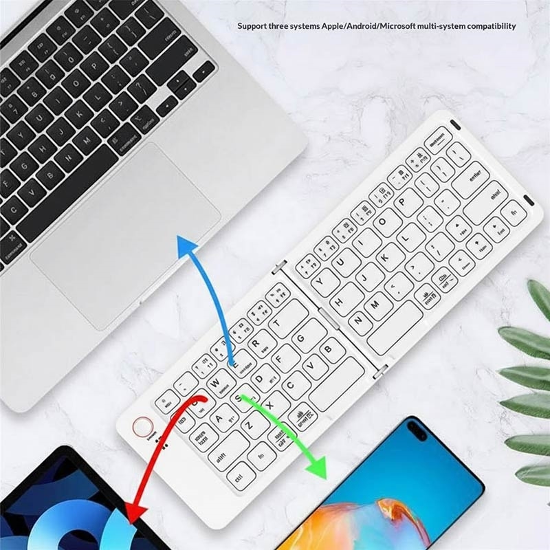 Le clavier sans fil magnétique pliable à 68 touches B023 est conçu pour les personnes qui travaillent et tapent en déplacement. Grâce à sa conception intelligente à double pliage magnétique, le clavier se plie pour atteindre une taille ultra-fine et compacte qui se glisse facilement dans un sac ou même une grande poche. Compatible avec la plupart des téléphones, tablettes et ordinateurs portables équipés de la technologie Bluetooth, il transforme n'importe quel endroit en un espace de travail productif en quelques secondes.