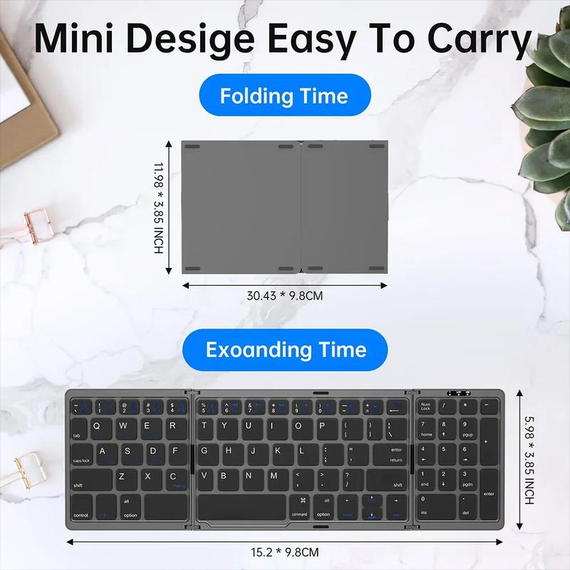 Travaillez plus confortablement où que vous soyez grâce au clavier Bluetooth pliable en trois parties B089. Conçu pour une utilisation quotidienne polyvalente, ce clavier sans fil compact se déplie pour offrir un clavier complet pratique avec un pavé numérique dédié, puis se replie en un format plus compact, idéal pour les déplacements, lorsqu’il n’est pas utilisé. C’est un excellent choix pour le travail mobile, les études, les voyages d’affaires, les trajets quotidiens et le télétravail.