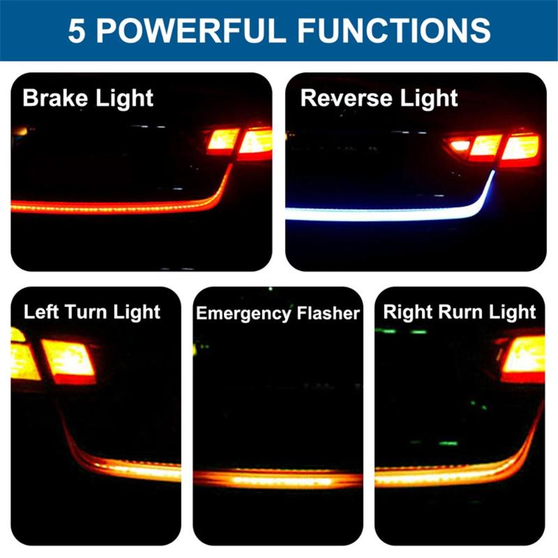 Améliorez la visibilité arrière et donnez un aspect moderne à votre véhicule grâce à cette bande lumineuse LED flexible de 120cm pour hayon. Conçue pour une utilisation universelle sur les voitures et les SUV, elle se monte le long du hayon ou du bord du coffre et fonctionne comme feu de circulation, feu de freinage, clignotants et éclairage de recul (en fonction du câblage). La bande utilise des LED ultra-brillantes pour une lumière vive, tandis que le boîtier en silicone étanche aide à protéger contre la pluie et les éclaboussures de la route. Avec une faible consommation d'énergie et une longue durée de vie, il s'agit d'une amélioration pratique pour la conduite de tous les jours, en particulier dans des conditions de faible luminosité.