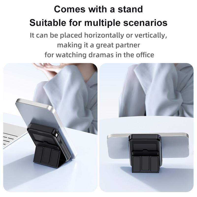 Un gadget de poche remplace un pad Qi, deux câbles séparés et un support de voyage, réduisant ainsi le poids des bagages et l'encombrement des câbles. La bobine magnétique délivre une puissance réelle de 15W , tandis que les profils PD, QC et SCP couvrent la quasi-totalité des téléphones modernes - une charge à l'épreuve du temps pour un prix unique et abordable.