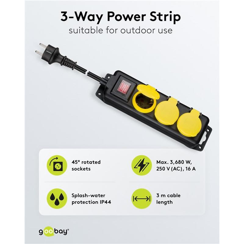 Goobay multiprise extérieure à 3 voies avec câble de 3m - Performance fiable pour l'intérieur et l'extérieur