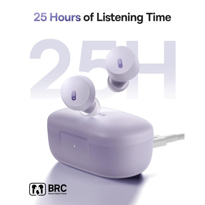 Baseus Bowie E18 Écouteurs True Wireless - Casque intra-auriculaire Bluetooth 5.3 avec réduction du bruit ENC et 25 heures d'autonomie