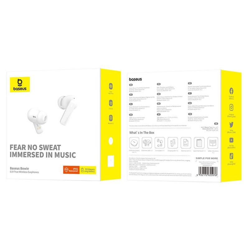 Baseus Bowie E19 Écouteurs sans fil avec ENC, 33 heures d'autonomie - Blanc stellaire