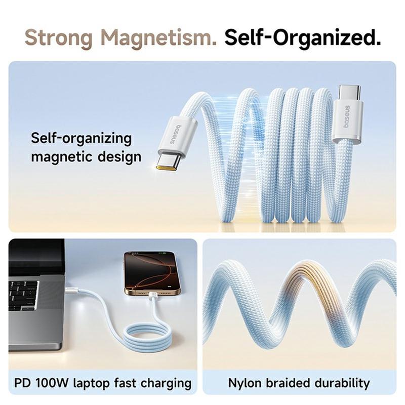 Améliorez votre routine de charge avec le câble Type-C vers Type-C Dynamic 4 Pro de BASEUS. Doté d'une conception magnétique intelligente et auto-organisatrice et d'une puissance de 100 W, ce câble permet de recharger rapidement et sans problème les ordinateurs portables, les smartphones et bien plus encore. La construction en nylon tressé durable garantit une fiabilité à long terme, tandis que la longueur compacte de 1mètre est parfaite pour les voyages et l'utilisation quotidienne.