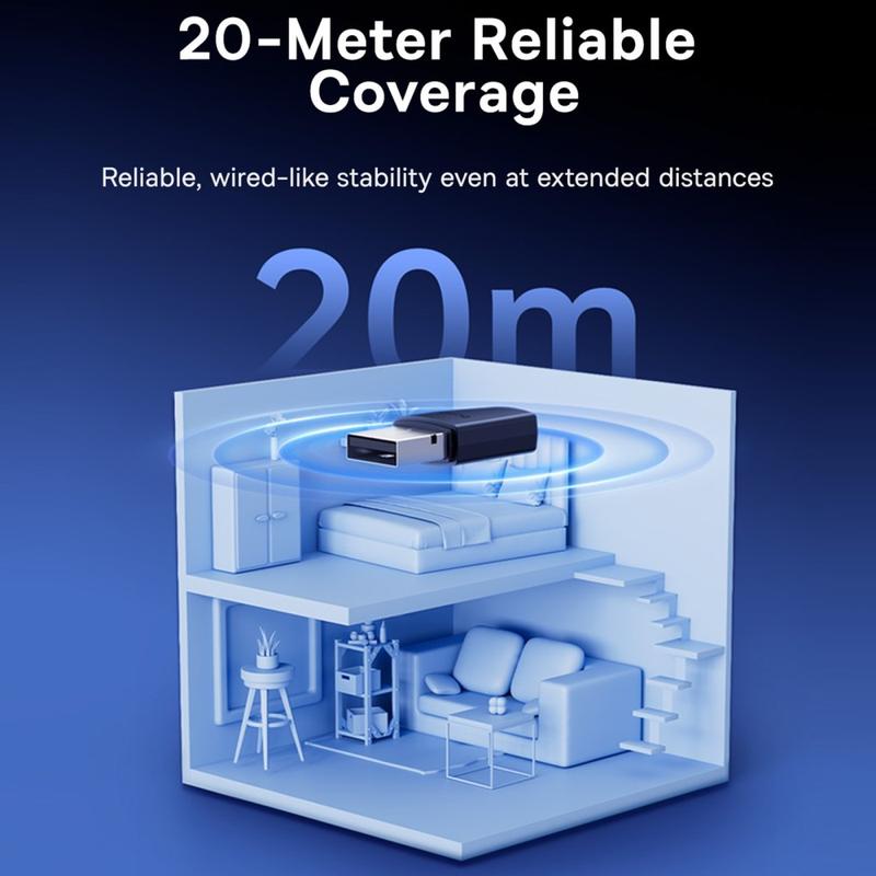 - Portée étendue (20 m) : Bénéficiez d'une connectivité stable et claire dans les espaces ouverts pour un placement flexible des appareils.