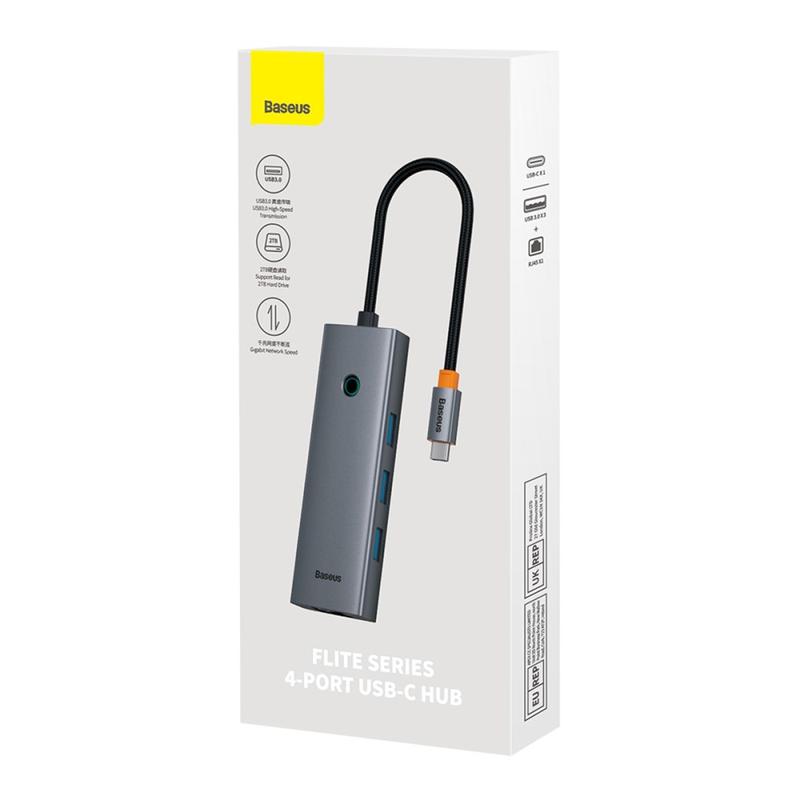 Baseus Flite BS-OH109 Hub d'accueil USB-C 4-en-1 avec prise en charge de la sortie vidéo HD 4K - 3xUSB 3.0, port Ethernet RJ45 - Améliorez votre travail et votre divertissement.