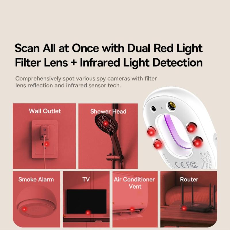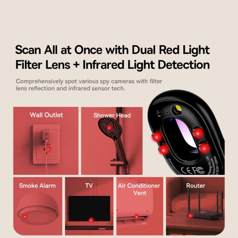 - Puce de détection 3D doublement améliorée : Capture avec précision les dispositifs de surveillance cachés grâce à une sensibilité accrue, ne laissant aucune caméra espionne indétectée.