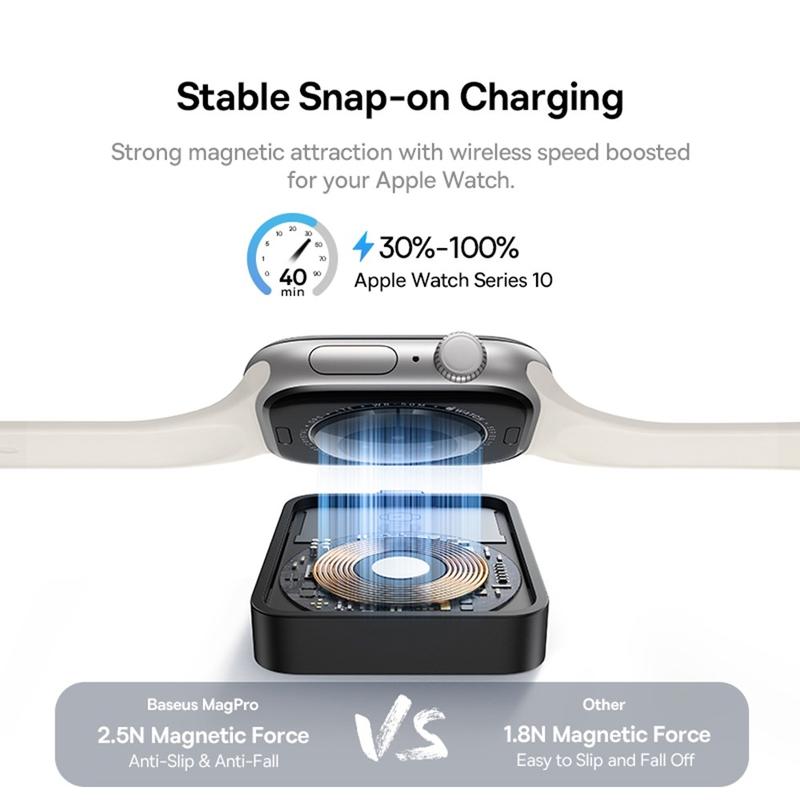 Baseus MagPro Chargeur magnétique sans fil pour Apple Watch - 2.5W, Type-C