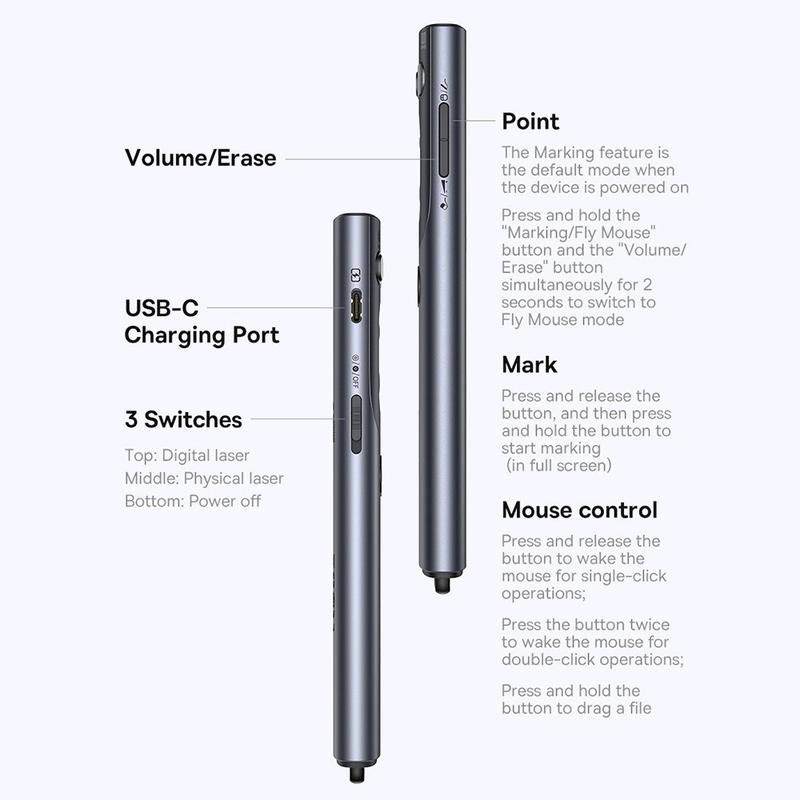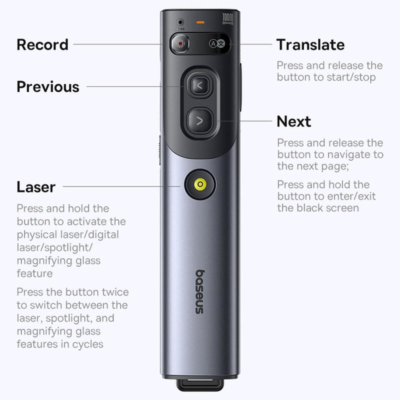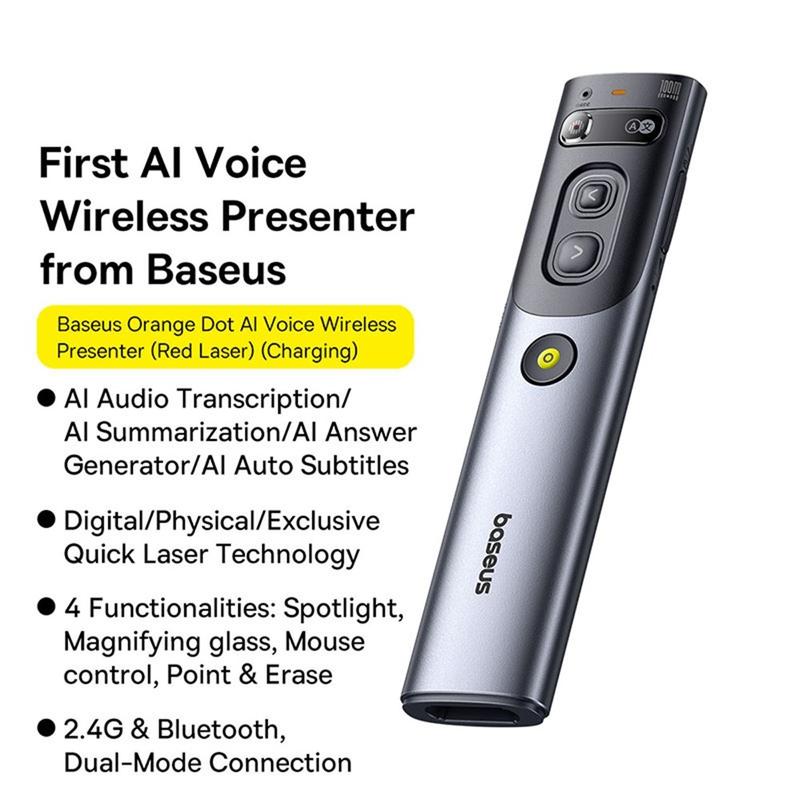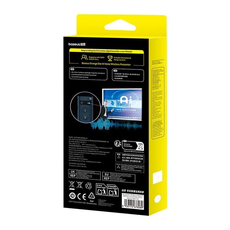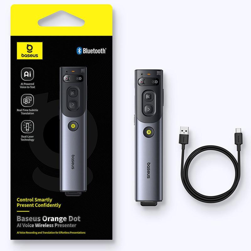 • Baseus Orange Dot AI Voice Présentateur sans fil bimode avec projecteur, loupe, souris pneumatique et fonctions de marquage de points - 2.4G, Bluetooth