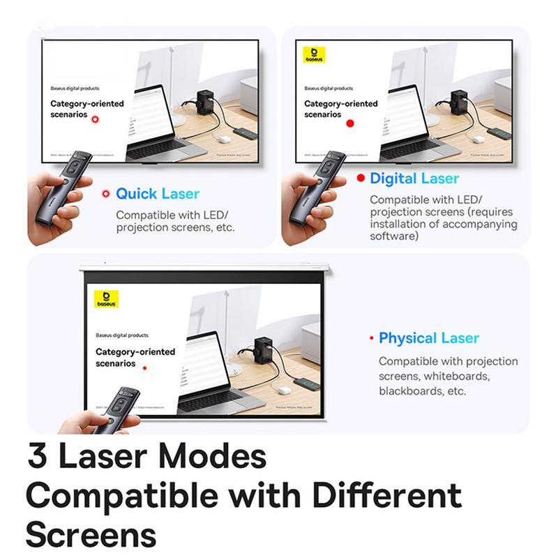 - 3 modes laser : Combine les technologies laser numériques et physiques pour une compatibilité avec différents écrans, projecteurs et affichages.