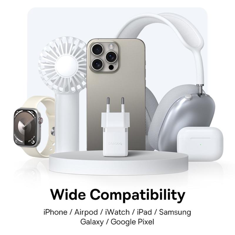Alimentez vos appareils plus rapidement et plus intelligemment avec le chargeur rapide 20W à double port BASEUS Palm. Doté de sorties USB-A et Type-C, il délivre de manière fiable jusqu'à 20W de puissance tout en maintenant une température de fonctionnement froide. Sa taille compacte se glisse facilement dans les sacs ou les poches, ce qui le rend parfait pour les voyages, la maison ou le bureau.