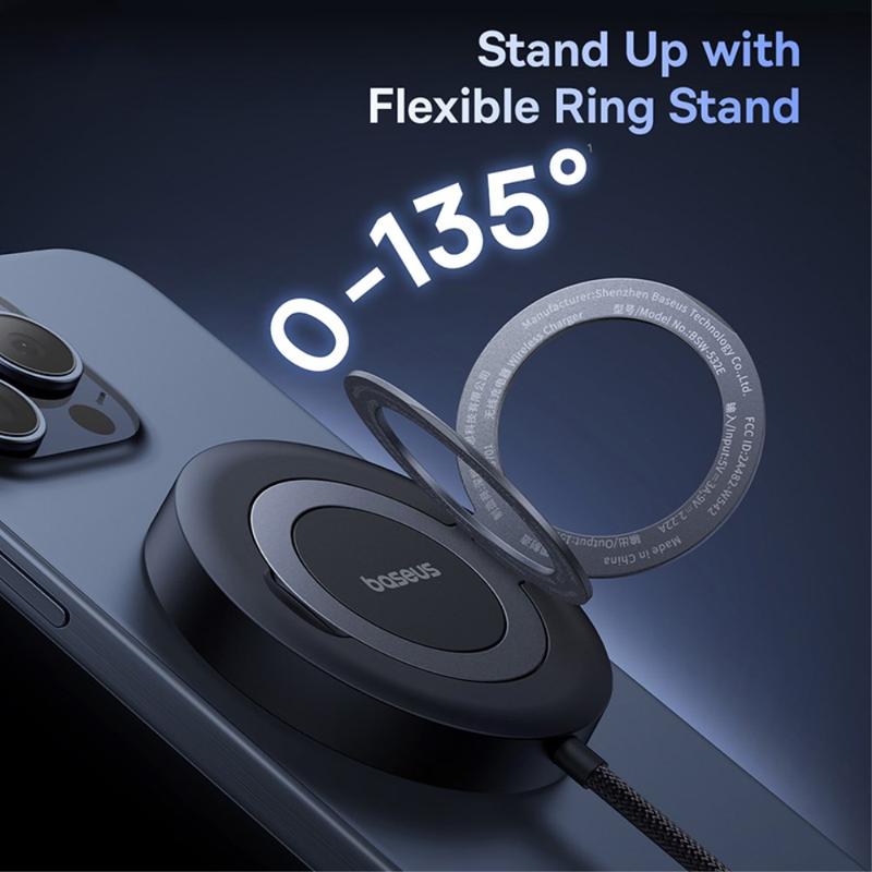 Améliorez votre expérience de charge avec le support de charge sans fil Qi2 magnétique Simple Mini4 de BASEUS. Certifié Qi2 et doté d'un anneau flexible, ce chargeur polyvalent permet de recharger votre téléphone en toute sécurité tout en le maintenant dans un angle de vision idéal.