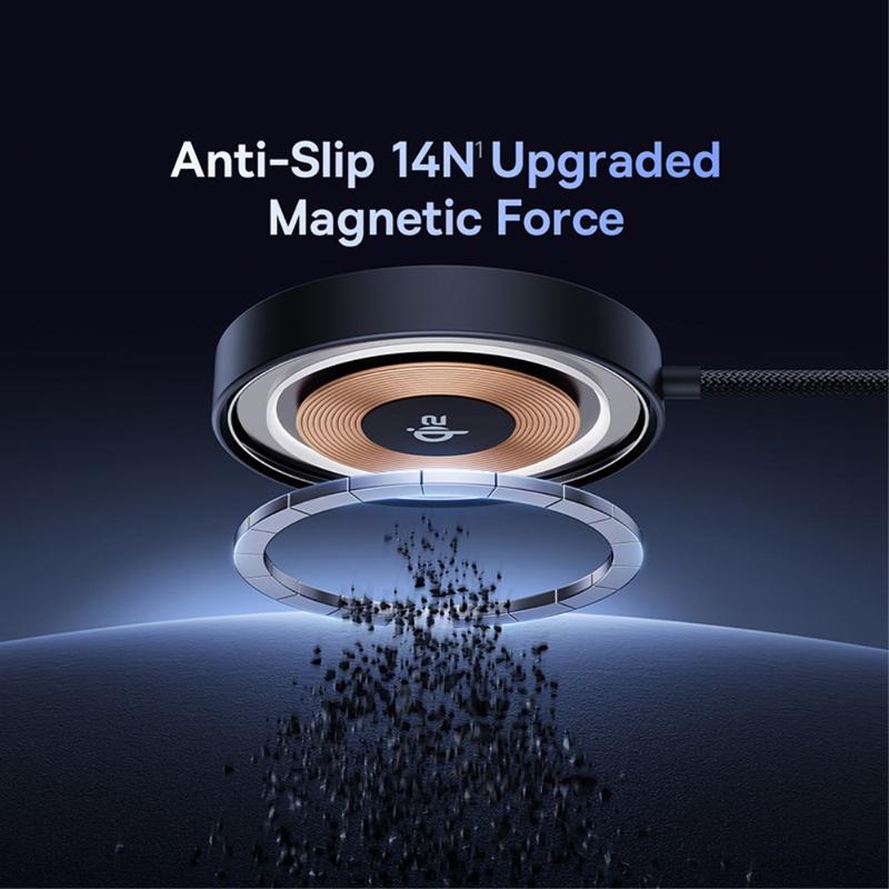 - Connexion magnétique puissante : Une force magnétique robuste de 14 N maintient fermement votre smartphone en place, évitant tout glissement ou désalignement.
