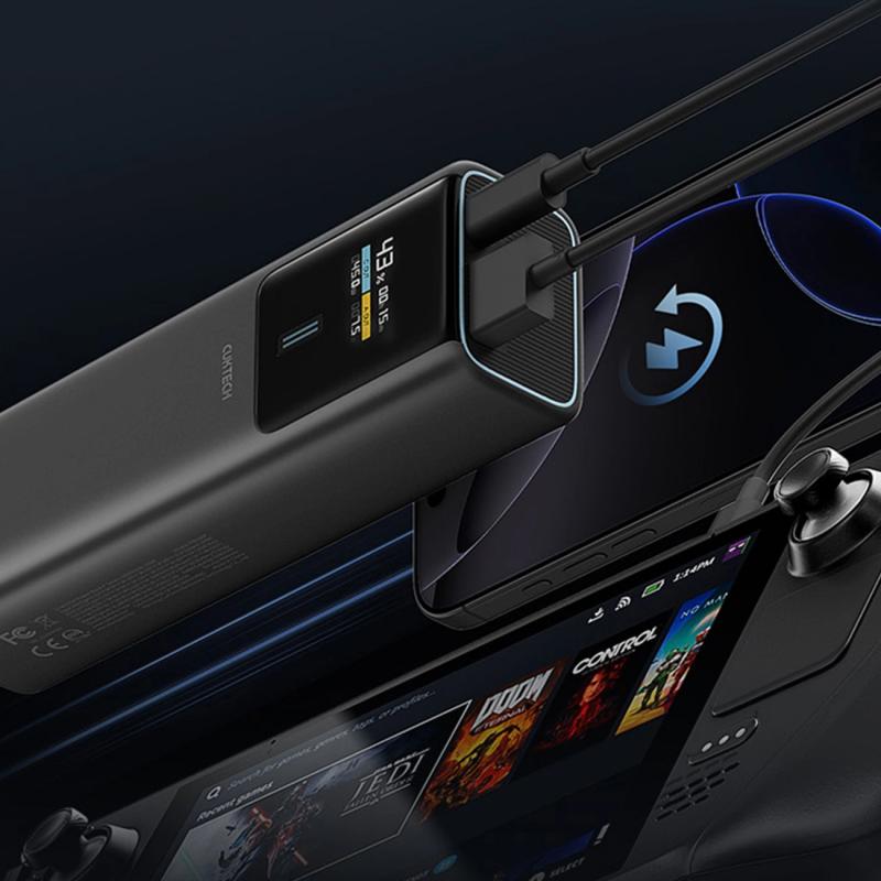 • Batterie externe Cuktech 10000mAh 150W avec écran TFT - USB-C 120 W + USB-A 33 W, recharge rapide 90 W, câble USB-C inclus