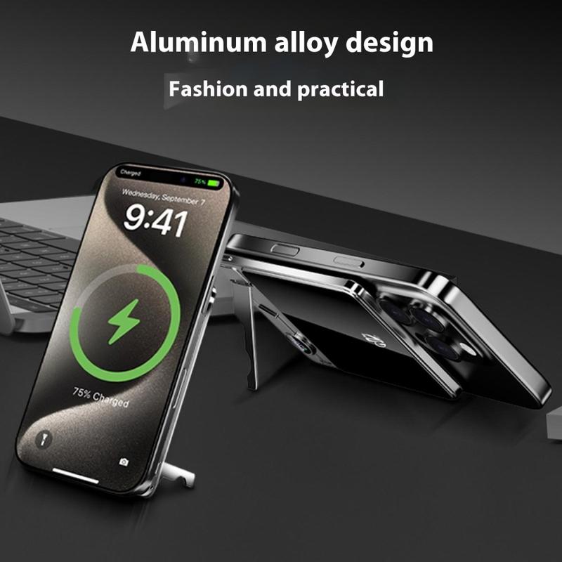 Restez alimenté partout avec la banque d'alimentation portable ultra-mince F15. Doté d'une puissante cellule lithium-polymère de 10000mAh, ce chargeur élégant offre une charge magnétique sans fil rapide de 15W compatible avec les appareils MagSafe, ainsi qu'une prise en charge supplémentaire pour la recharge de l'Apple Watch. Son boîtier ultrafin en alliage d'aluminium ne mesure que 13,5 mm, ce qui le rend léger et facile à transporter. Un support pliable intégré le transforme en une station de charge de bureau pratique, tandis que l'affichage numérique vous informe de l'autonomie restante de la batterie. Parfait pour les voyages, le travail et l'utilisation quotidienne, le F15 est le mélange idéal de portabilité, de style et de performance de charge intelligente.